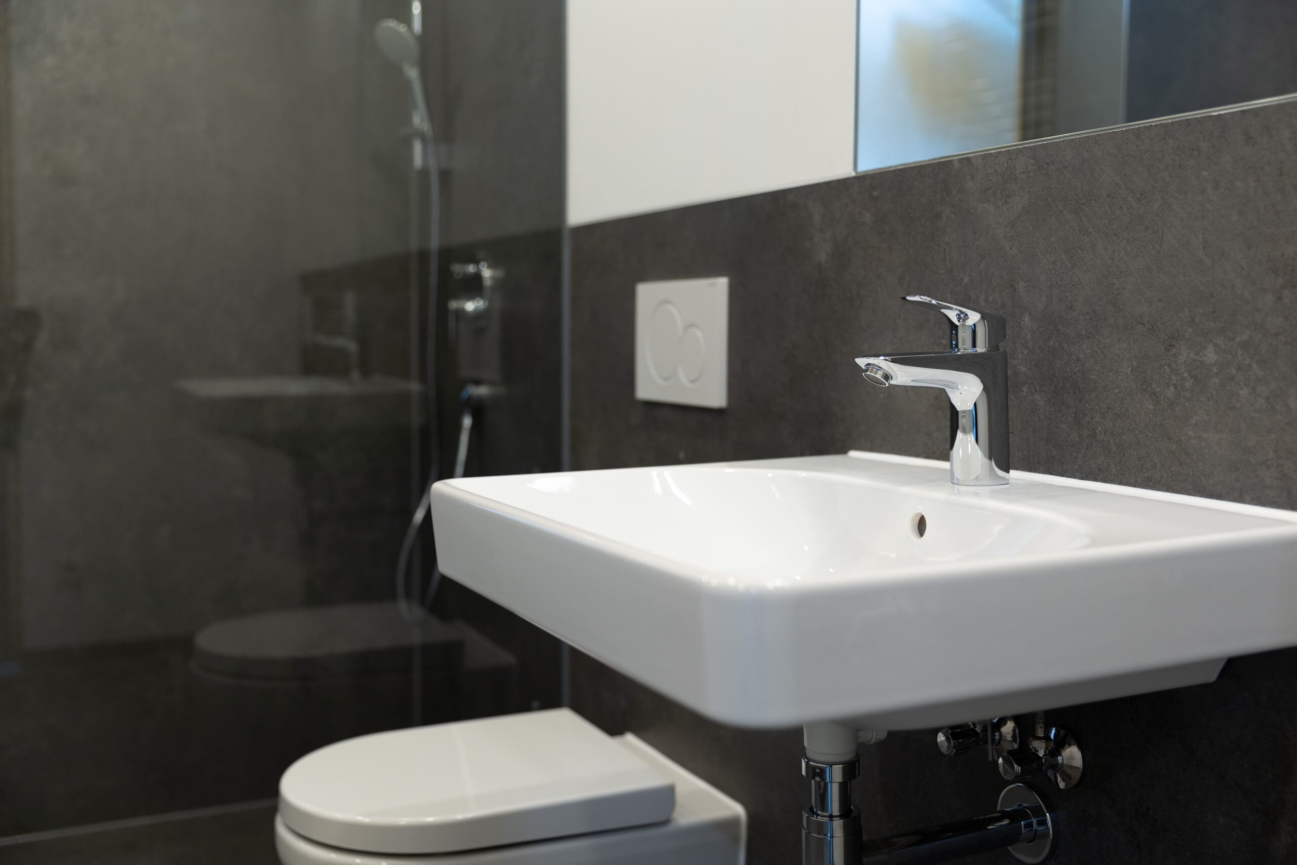 Die Badmodule überzeugen durch eine klare, durchdachte Gestaltung und eine hochwertige Ausstattung. Großzügige Raumkonzepte, präzise Linienführung und eine harmonische Anordnung der Elemente schaffen ein modernes und zugleich ruhiges Ambiente. Edle Oberflächen in Anthrazit treffen auf chromfarbene Armaturen. Das Ergebnis sind stilvolle Bäder, die Funktionalität, Komfort und zeitlose Eleganz vereinen.